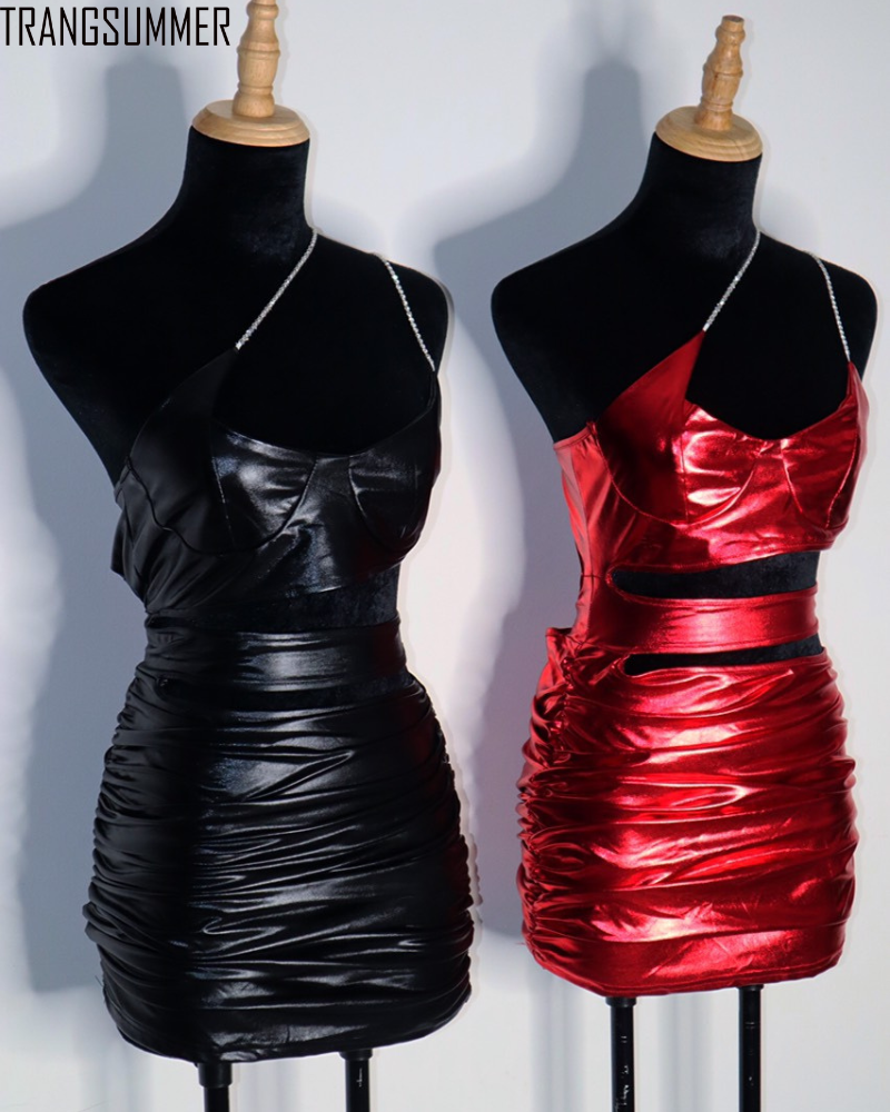 Đầm body ngắn với những đường cut-out táo bạo, sexy, chất vải thun da co giãn ôm sát body.