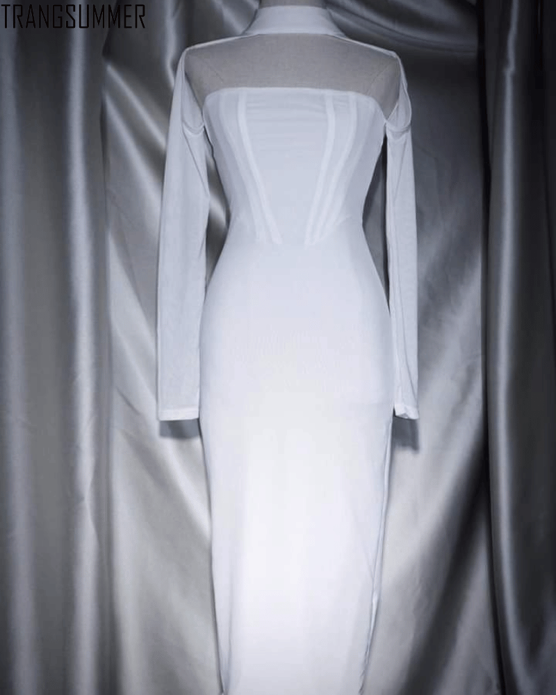 Đầm body lưới dáng dài cut-out ngực siêu sexy và gợi cảm. Thiết kế tay dài cổ cao kết hợp cùng phần corset ôm sát body khiến bạn quyến rũ hết nấc.