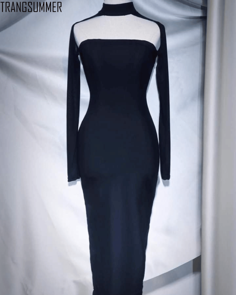 Đầm body lưới dáng dài cut-out ngực siêu sexy và gợi cảm. Thiết kế tay dài cổ cao kết hợp cùng phần corset ôm sát body khiến bạn quyến rũ hết nấc.