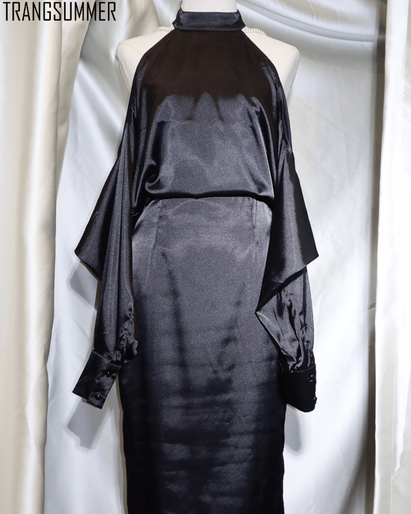 Chiếc đầm satin diện cực kì sexy, sang trọng. Thiết kế hở vai khoe lưng trần gợi cảm. Chất vải silk mềm, mịn, bóng, tạo cảm giác sang chảnh, dễ chịu cho người mặc .