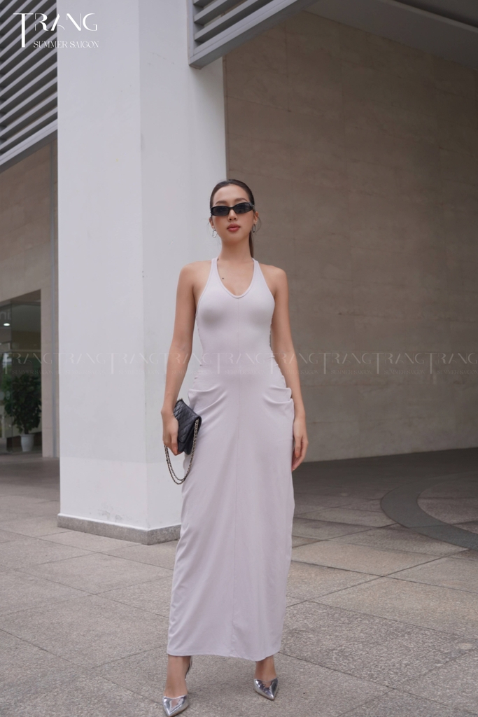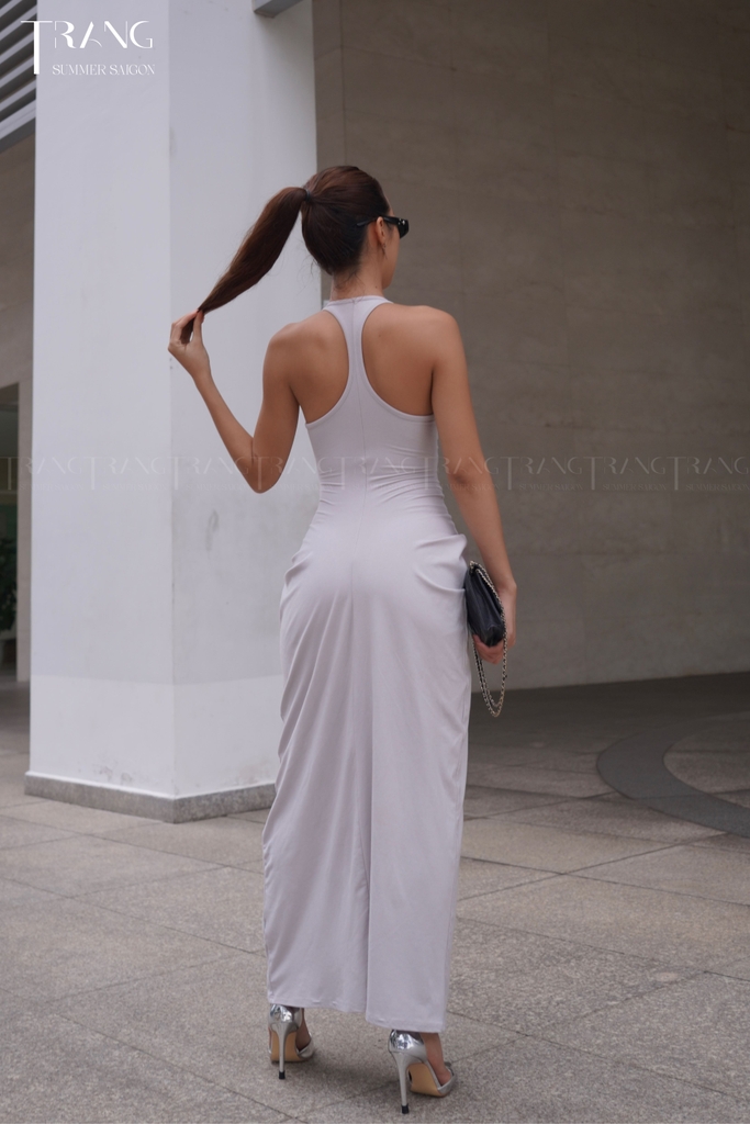 ĐẦM BODYCON DÁNG DÀI NHẤN EO LISA MÀU GHI