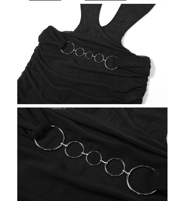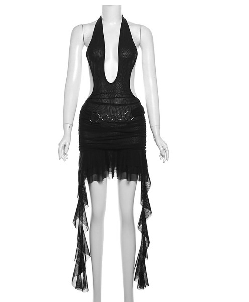 Đầm lưới xuyên thấu hở lưng quyến rũ, cổ khoét chữ V phần ngực phong cách mùa hè Size: S M L