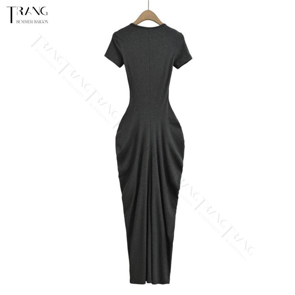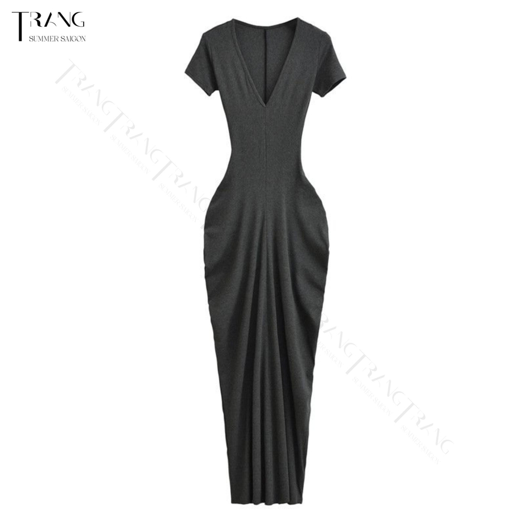 Đầm body dáng dài đơn giản, cổ V sâu tạo điểm nhấn eo và tôn vòng mông căng tròn với thiết kế đặc biệt từ TRANG SUMMER.