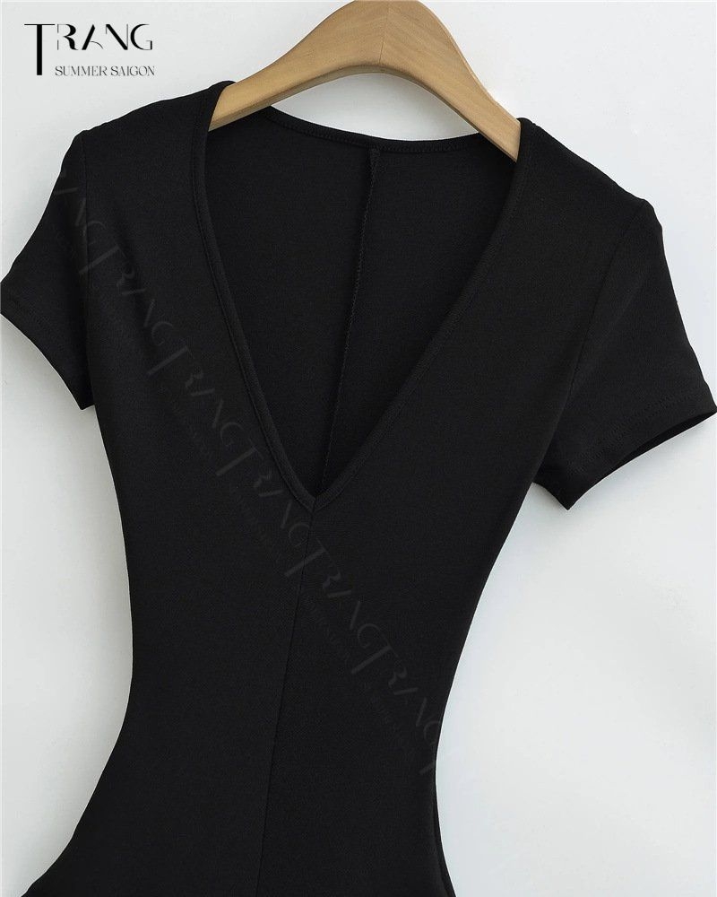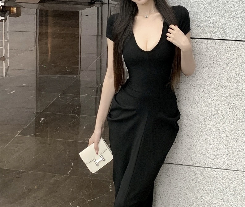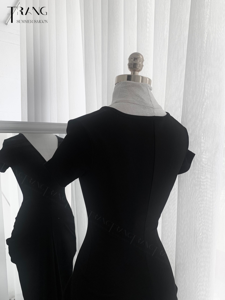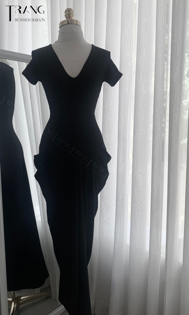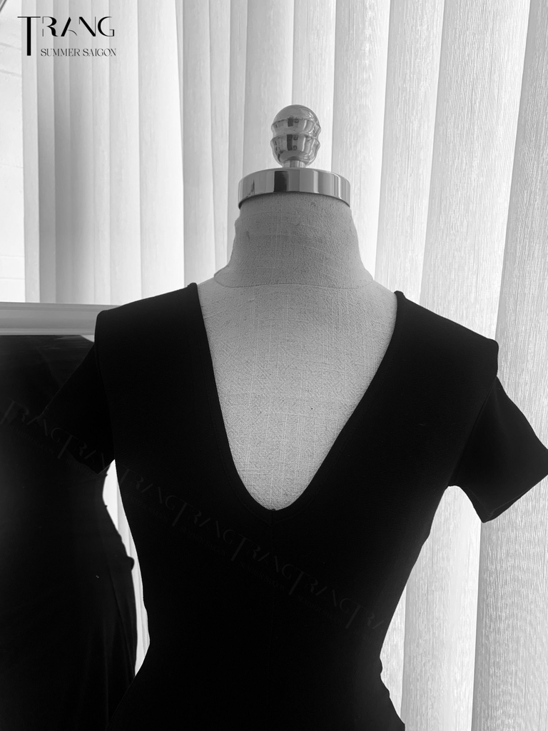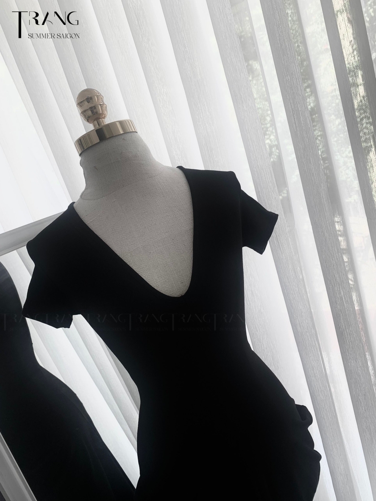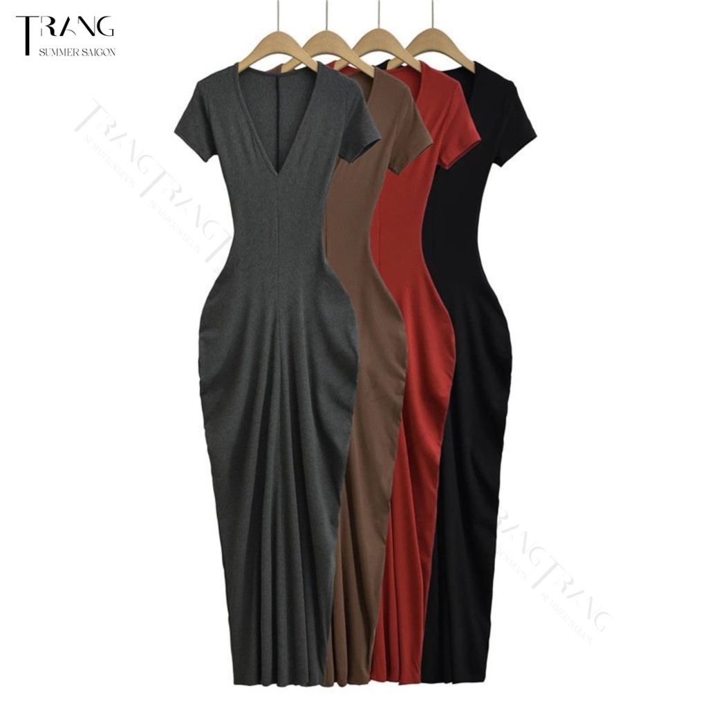 Đầm body dáng dài đơn giản, cổ V sâu tạo điểm nhấn eo và tôn vòng mông căng tròn với thiết kế đặc biệt từ TRANG SUMMER.