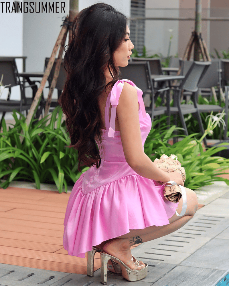 Đầm cúp ngực hay dây phối bèo xòe trông thật ngọt ngào, thiết kế nhấn bèo tạm cảm giác eo thon.