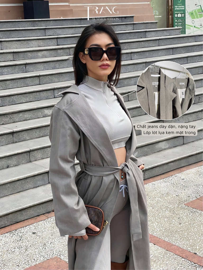 DECEM MANTO JEANS - ÁO MANTO JEANS MÀU XÁM kèm dây belt