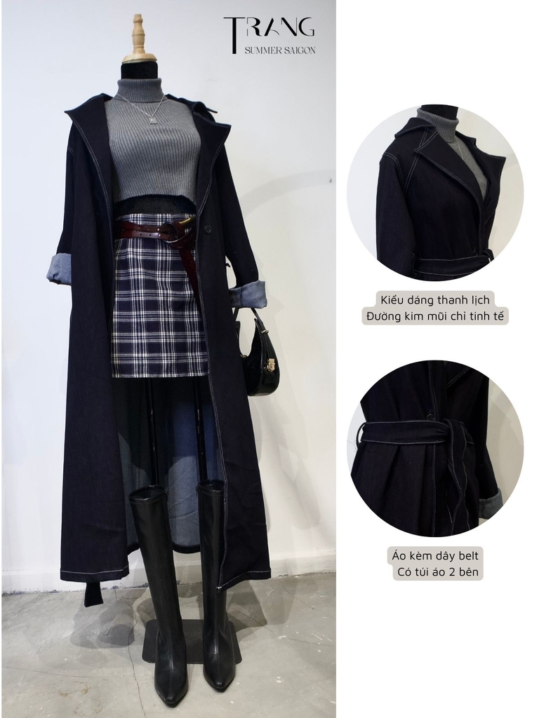 DECEM MANTO JEANS - ÁO MANTO JEANS MÀU XANH ĐEN kèm dây belt