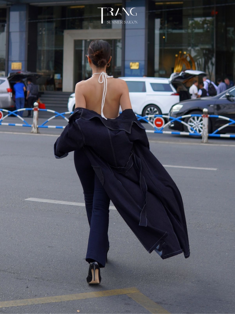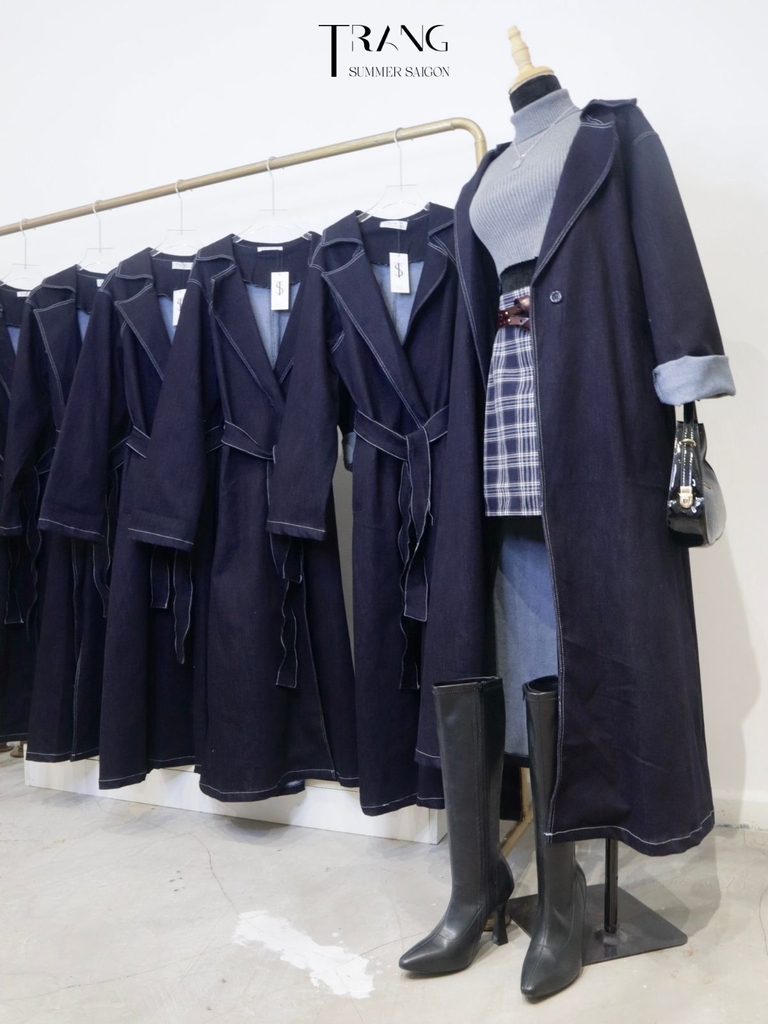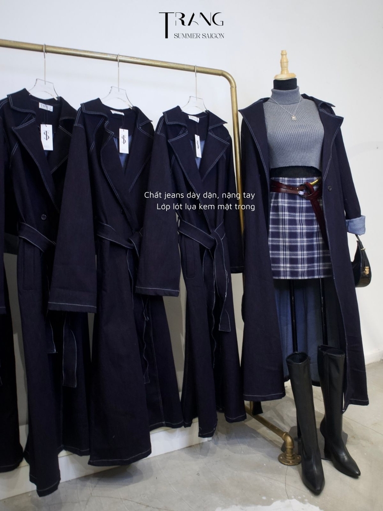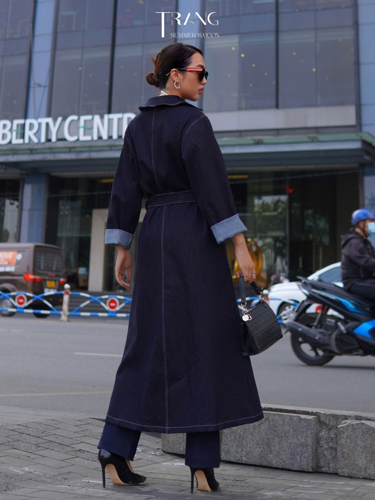 Món đồ không thể thiếu trong tủ đồ của hầu hết các bạn gái, Áo manto jeans màu xanh đen. Chiếc áo khoác vô cùng tiện lợi này không chỉ giúp giữ ấm mà còn là phụ kiện khoác ngoài sành điệu, với chất liệu jeans dày dặn, nặng tay, kiểu dáng thanh lịch, phù hợp cho nàng phối đồ đa dạng phong cách, tự tin dạo phố.