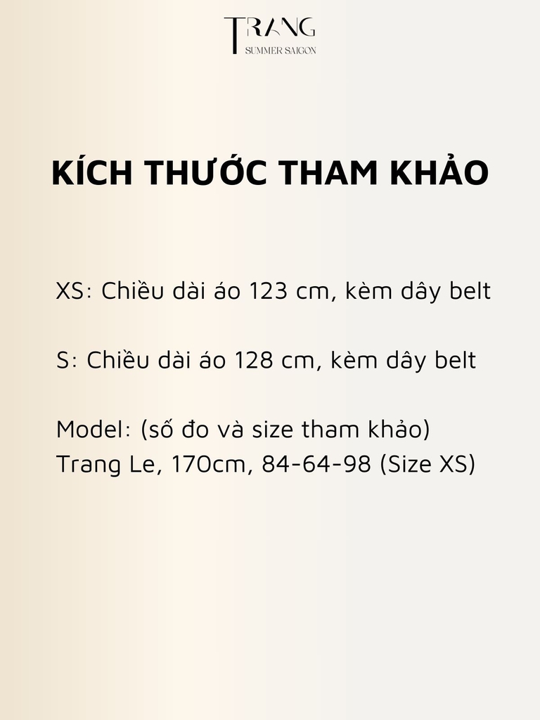 Chiều dài áo: XS 123cm, S 128cm