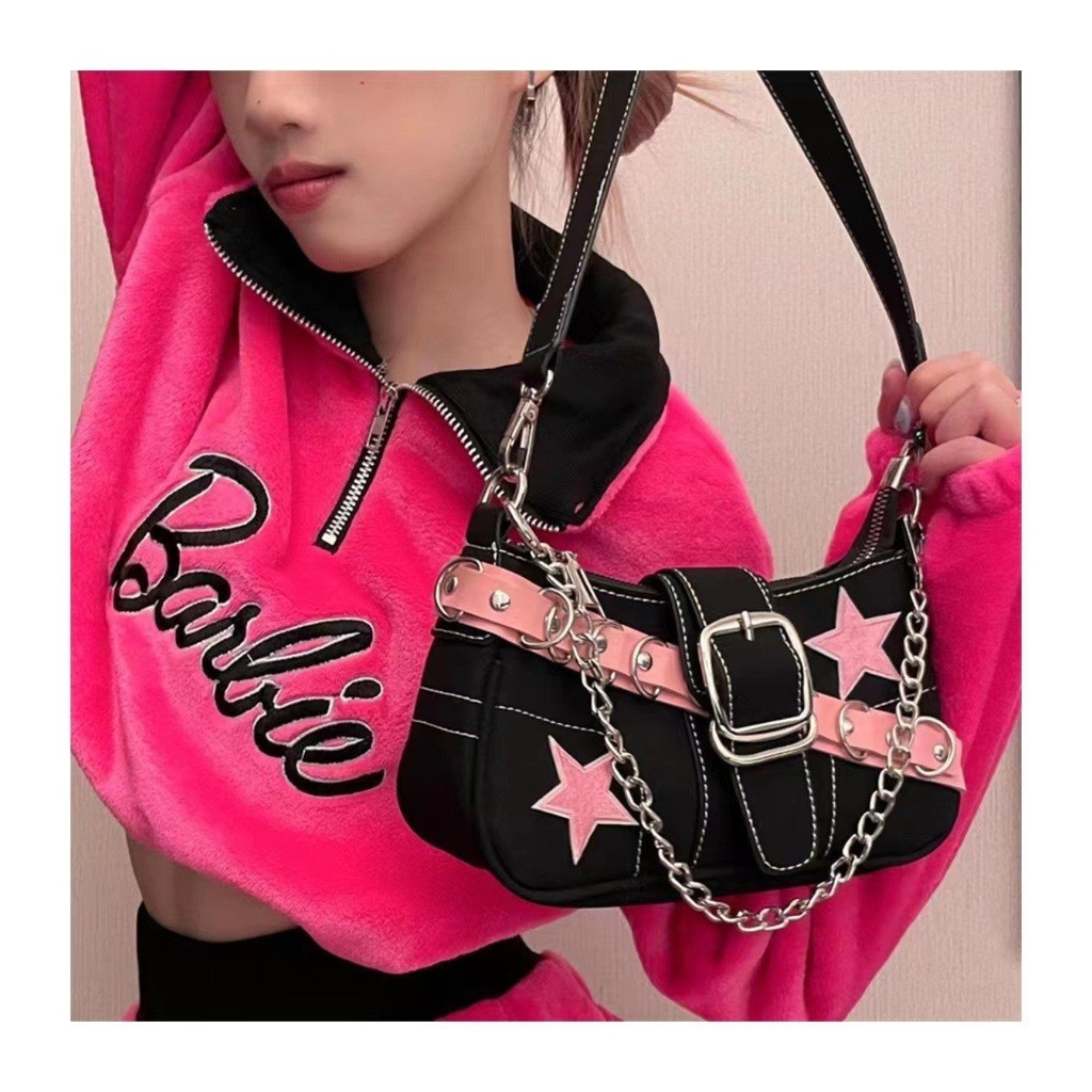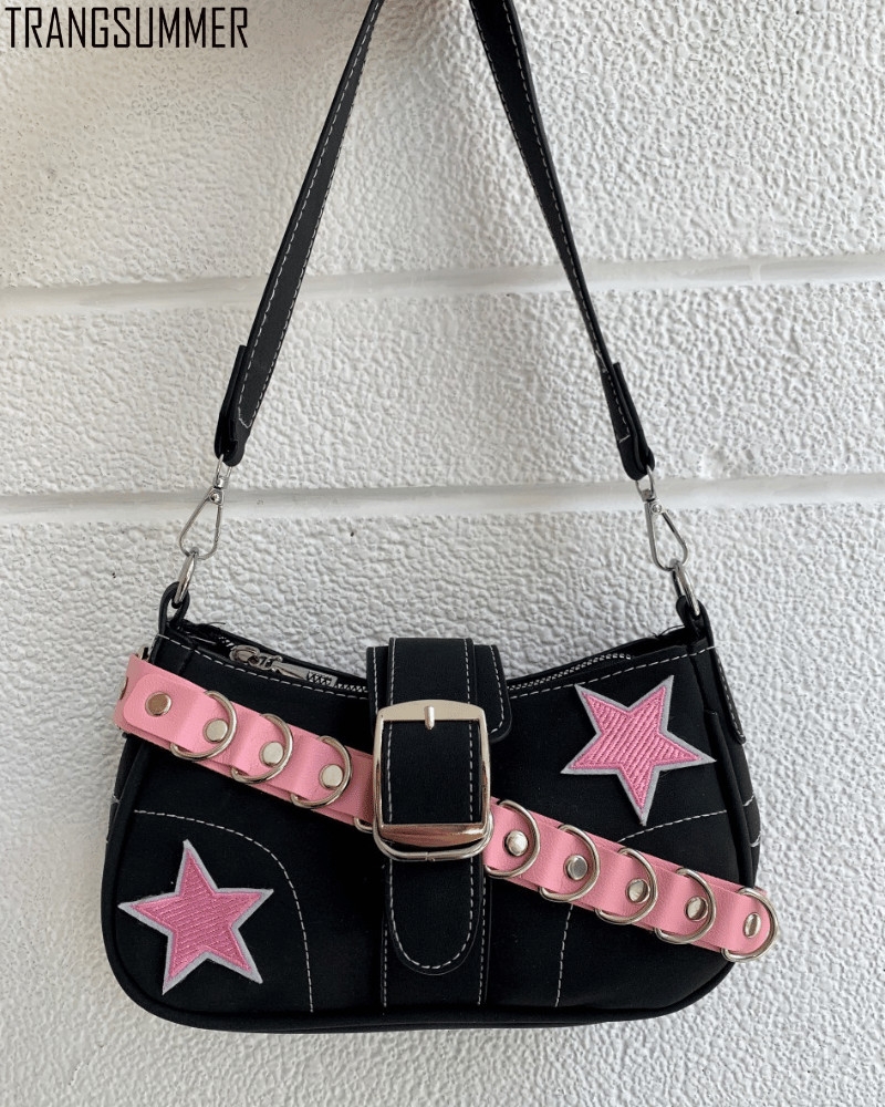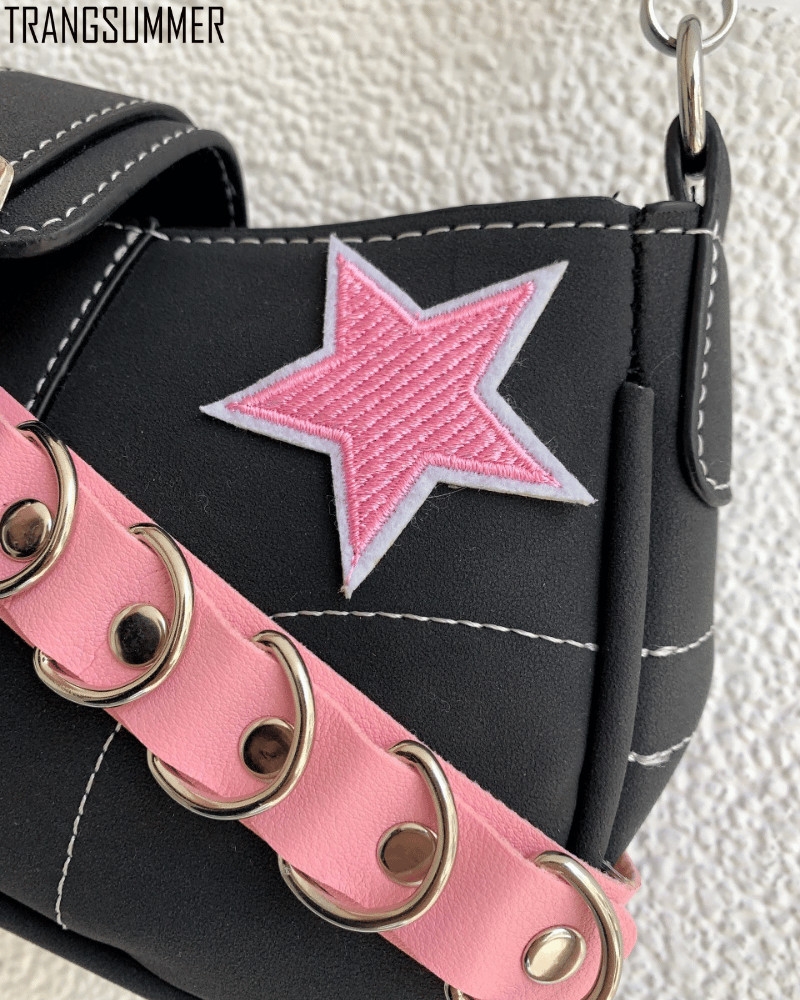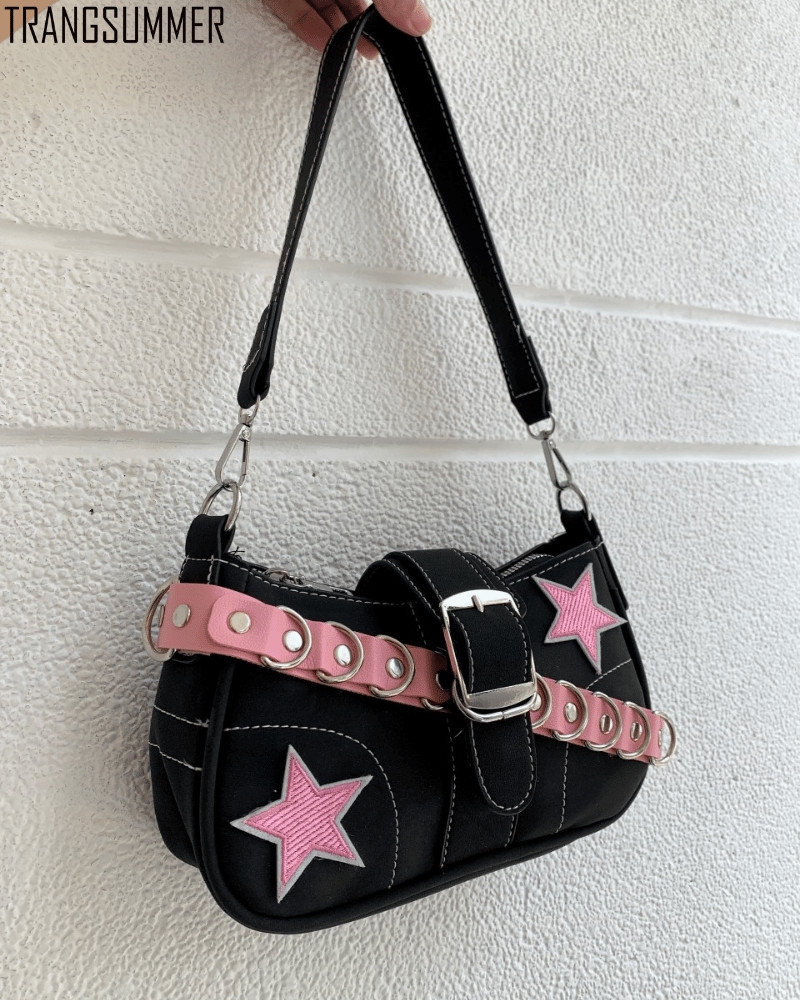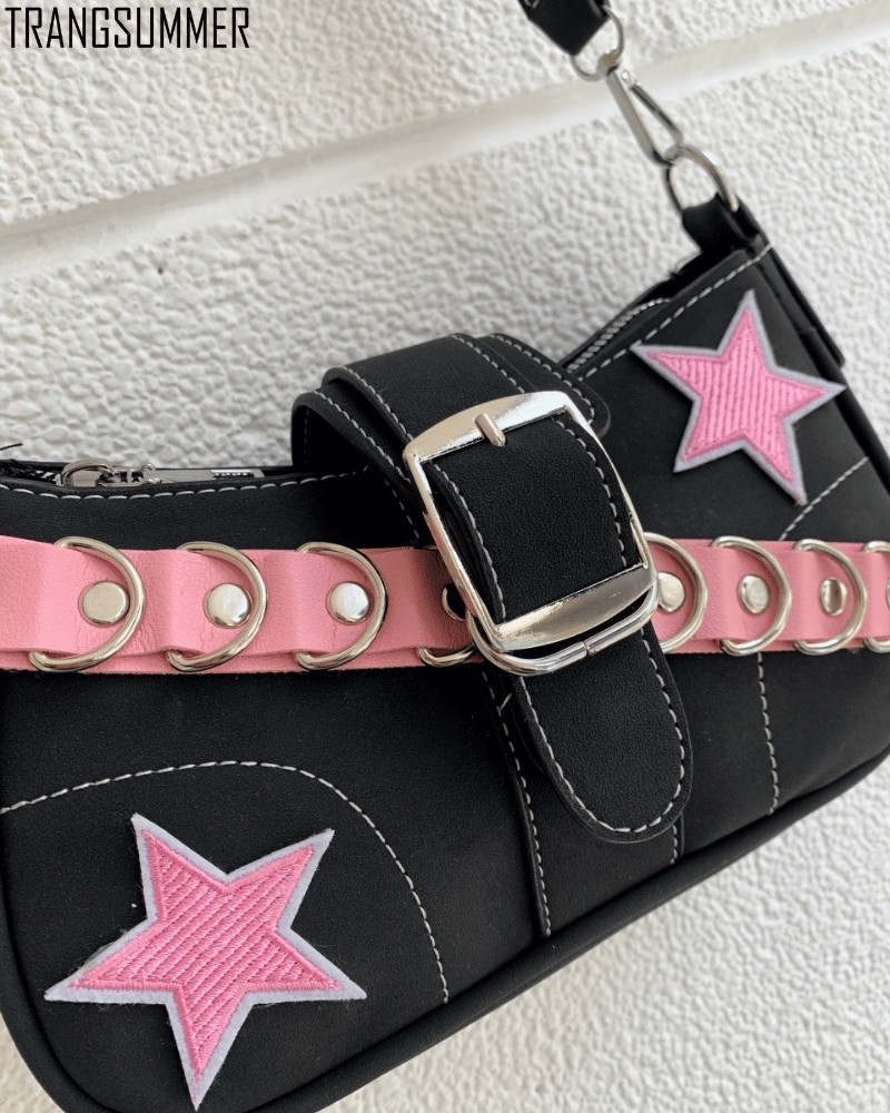 Túi xách trendy hình chữ nhật được đính xích và ngôi sao giúp oufit của bạn trở nên bắt mắt hơn nhé,