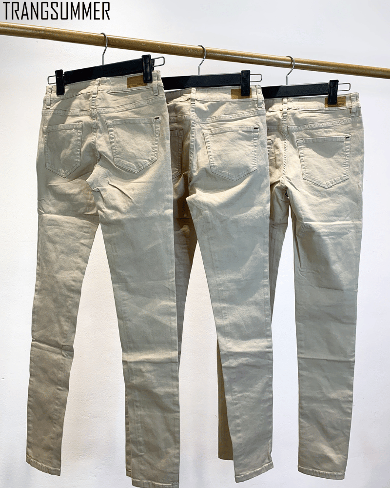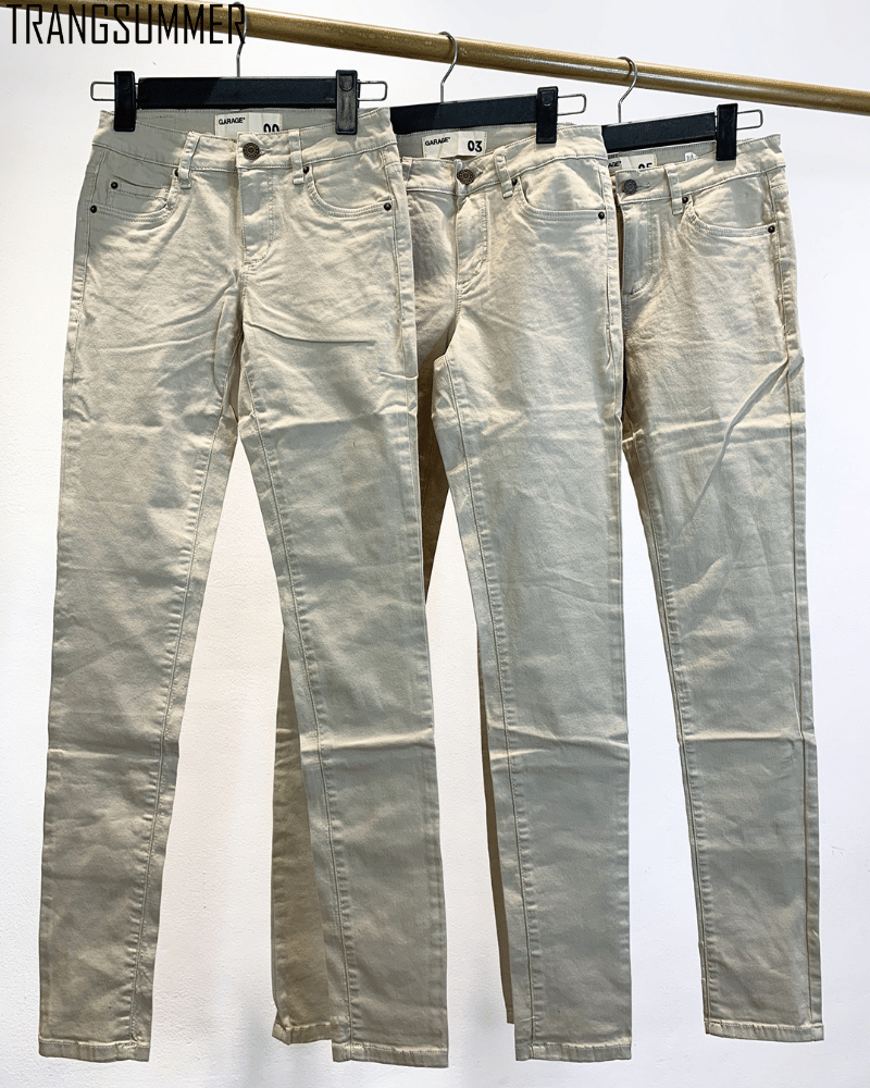 Quần jeans dài GARAGE ống ôm với gam màu nude tây, lưng cao push mông hack dáng.