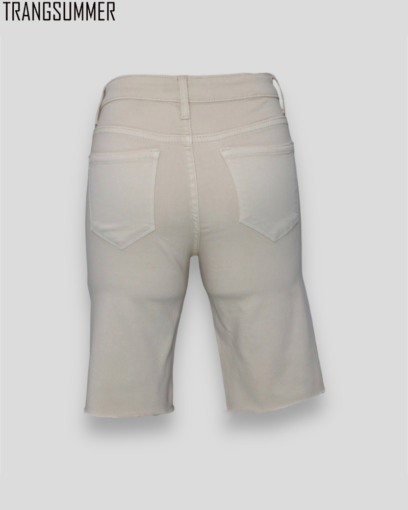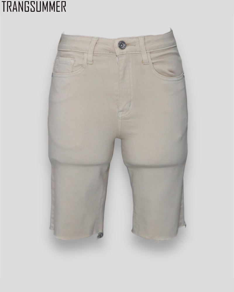 Quần lửng trên gối chất co giãn cho bạn thoải mái vận động, gam màu nude tây siêu cưng sẽ giúp bạn dễ mix quần áo.