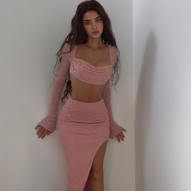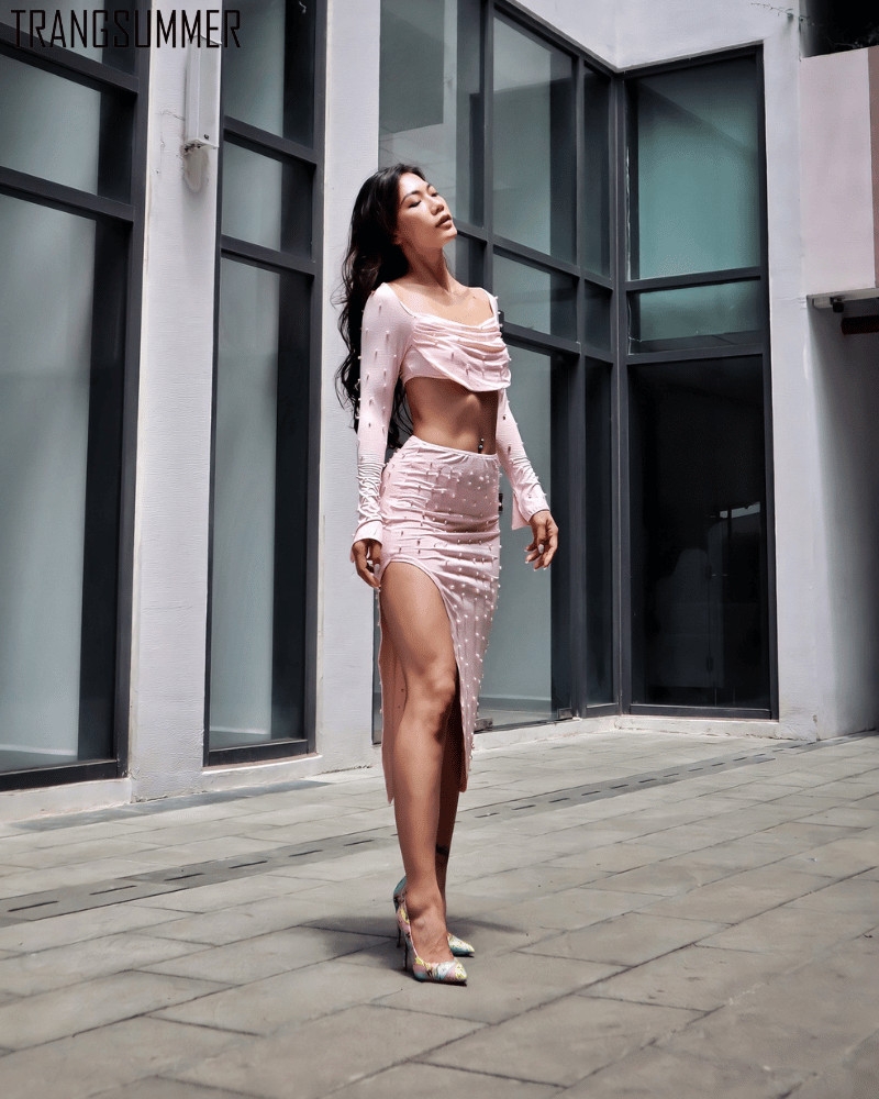 Set váy body đính hạt ngọc trai siêu sang, thiết kế trễ ngực khoe vòng một hấp dẫn.