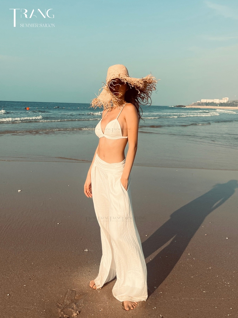 Chất liệu: Bra + quần suông: linen, áo sơ mi: cotton