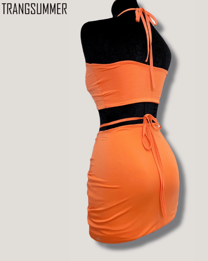 Set váy body áo croptop cut-out ngực khoe vòng một quyến rũ, chân váy ngắn khoe chân thon dài