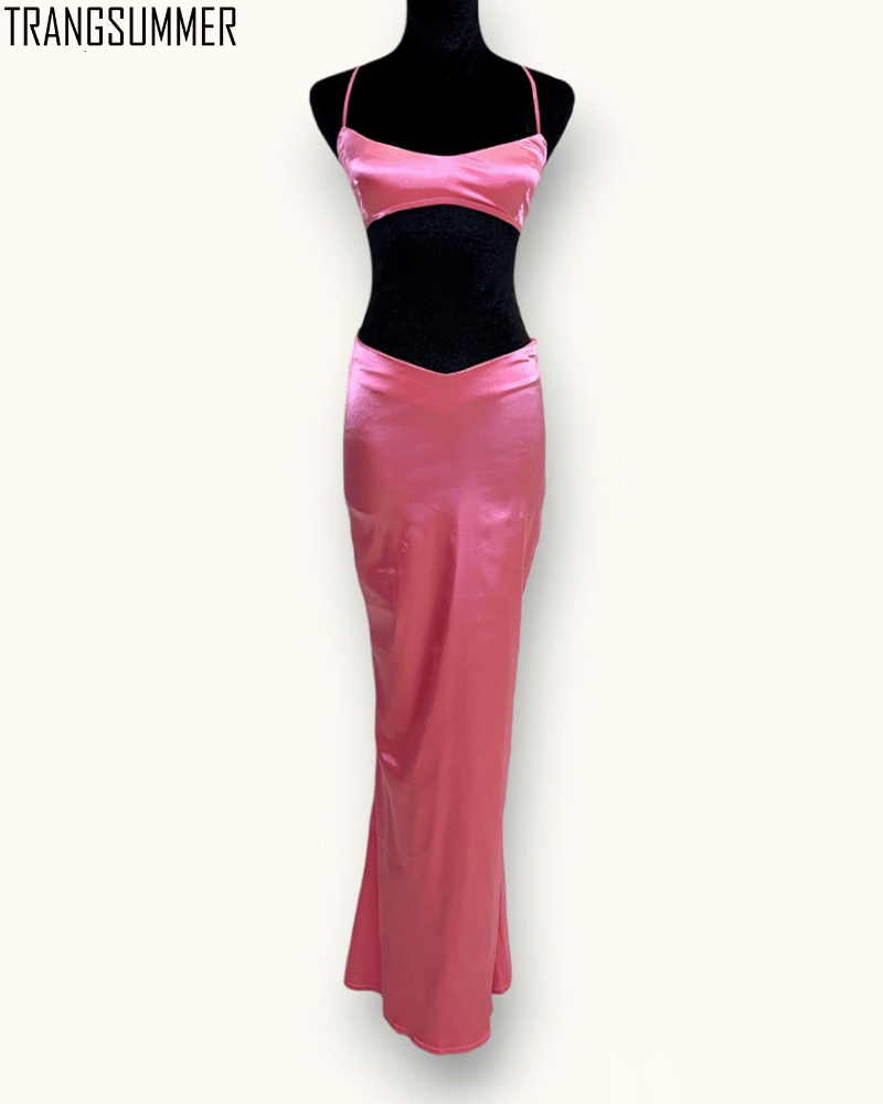 Set váy body chất silk mềm mịn mát dáng dài hack chân, áo dáng croptop sexy khoe ngực đầy gợi cảm.