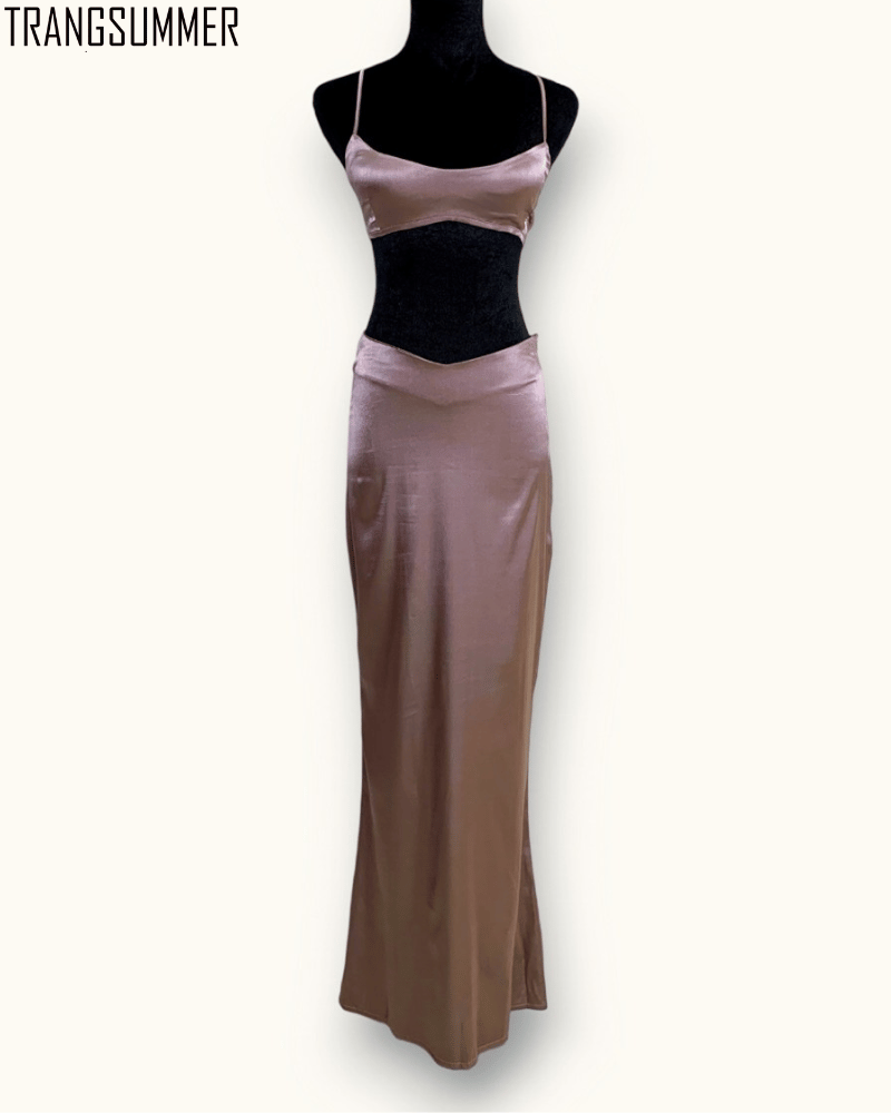 Set váy body chất silk mềm mịn mát dáng dài hack chân, áo dáng croptop sexy khoe ngực đầy gợi cảm.