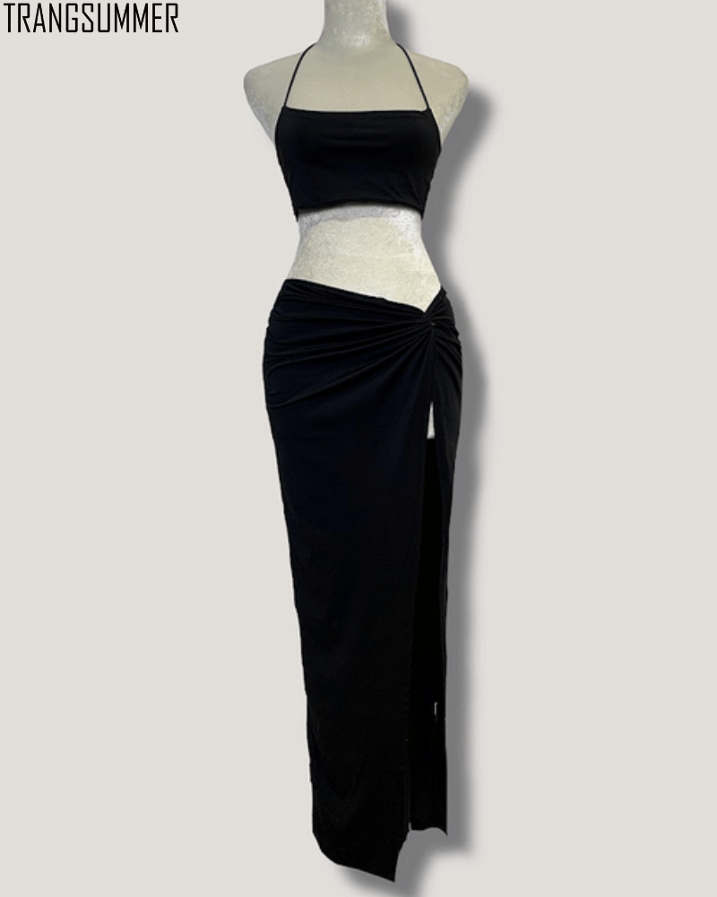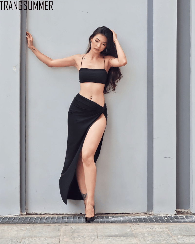 Set váy body chất thun với thiết kế áo áo chéo ngực khoe vòng một hấp dẫn, phần chân váy kiểu đắp chéo cho nàng dễ dàng biến hóa thành mẫu váy xẻ đùi đầy sexy và quyến rũ.
