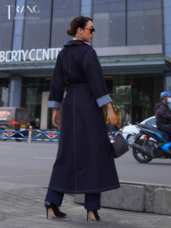 Mix and match dạo phố cực chất với manto jeans xanh đen kết hợp cùng áo len cổ yếm mix lưới với các đường cắt xẻ táo...