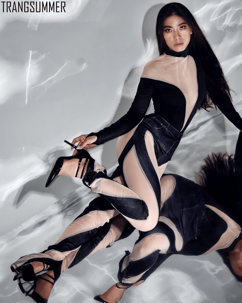 Set quần loe bodysuit siêu hack dáng, với chất liệu thun mix lưới mềm co giãn cùng đường cut-out táo bạo sẽ giúp bạn thật sexy, quyến rũ nhé.
