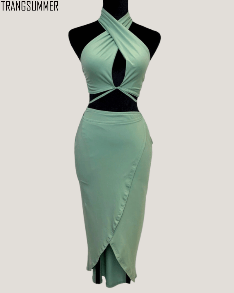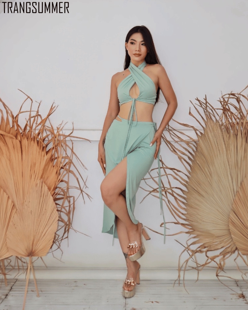 Set váy body chất thun với thiết kế áo áo chéo ngực khoe vòng một hấp dẫn, phần chân váy kiểu đắp chéo cho nàng dễ dàng biến hóa thành mẫu váy xẻ đùi đầy sexy và quyến rũ.