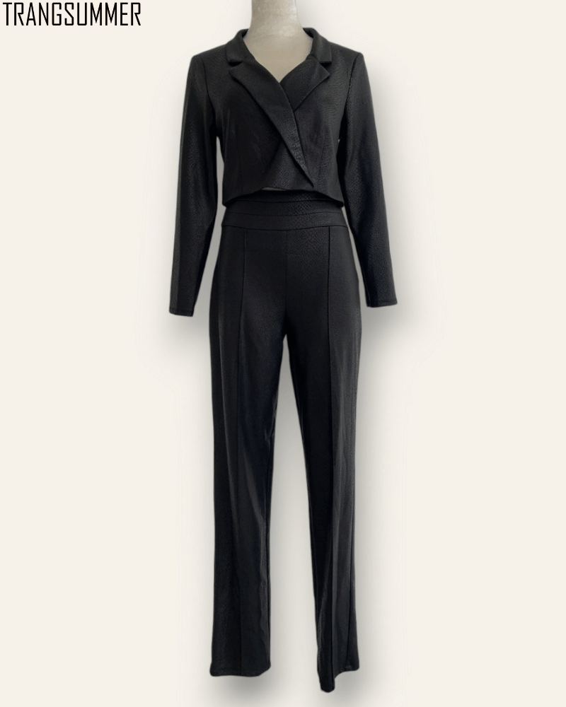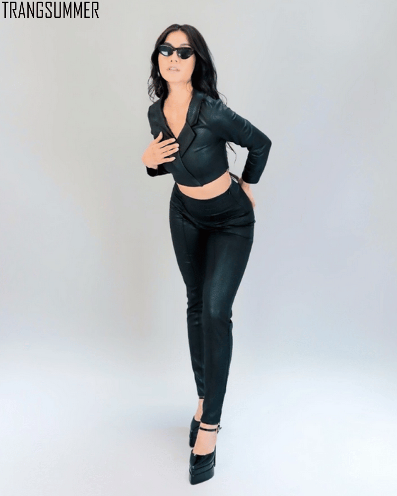 Set vest áo croptop và quần dài dáng ôm sẽ giúp bạn tự tin khoe đường cong cơ thể.